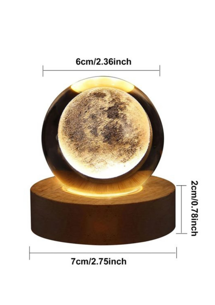 This crystal ball night light has transparent surface creates unique photographic effects that are sure to amaze and delight. It uses advanced 3D interior carving and flame extraction technology to present a huge reality and solid universe in the crystal galaxy. The crystal ball is made of K9 grade crystal, and the base is made of selected solid wood. The internal image is carved with advanced 3D carving technology, which is very realistic. It is suitable for any place to show artistic and elegant style for your bedroom, living room and office.