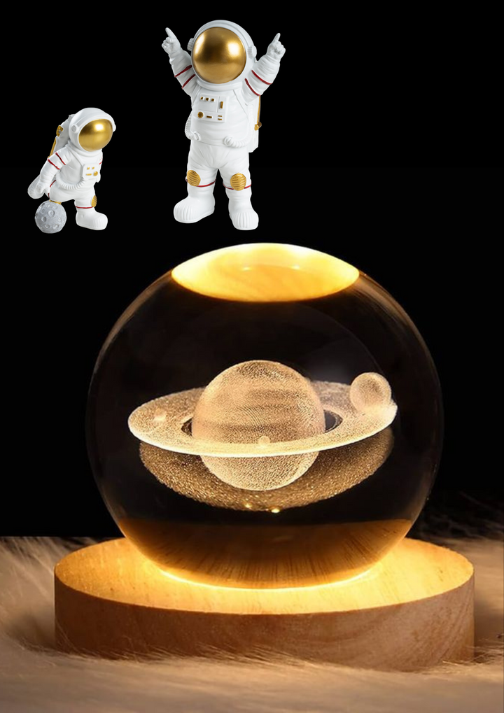 Crystal Ball Night Light Glowing Planet Galaxy Astronaut 3d Moon Table Lamp Usb (random Design)