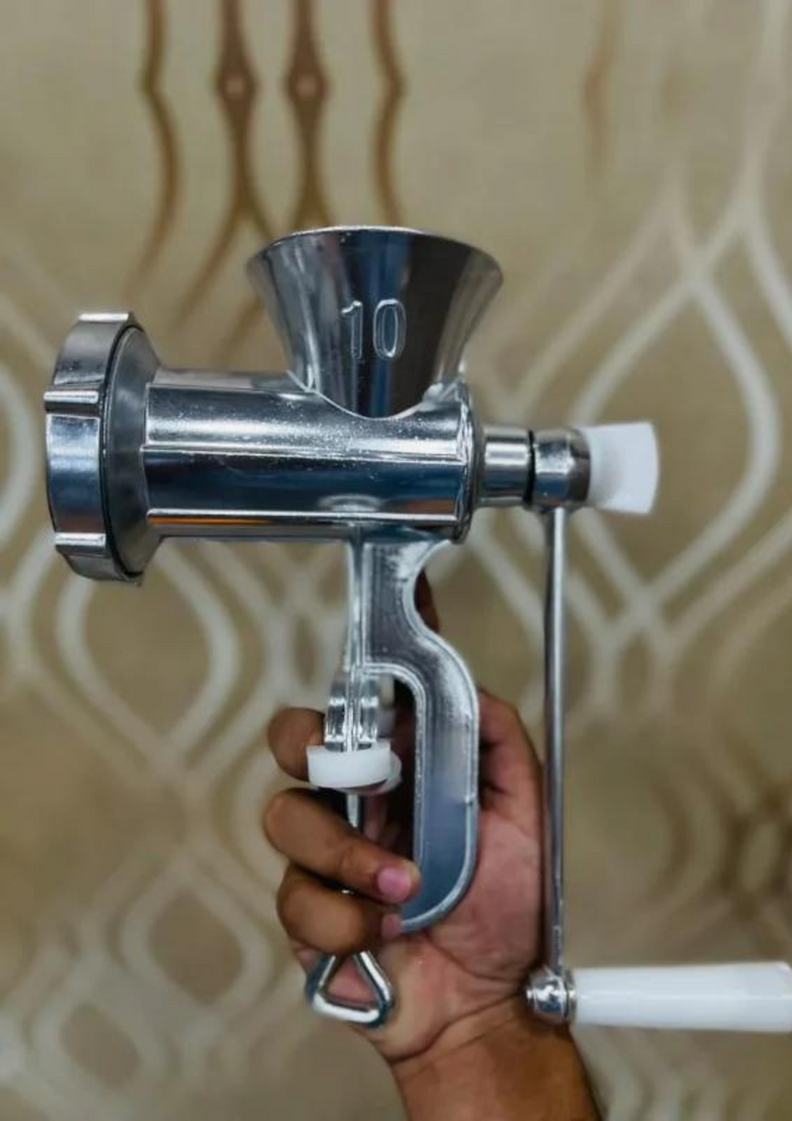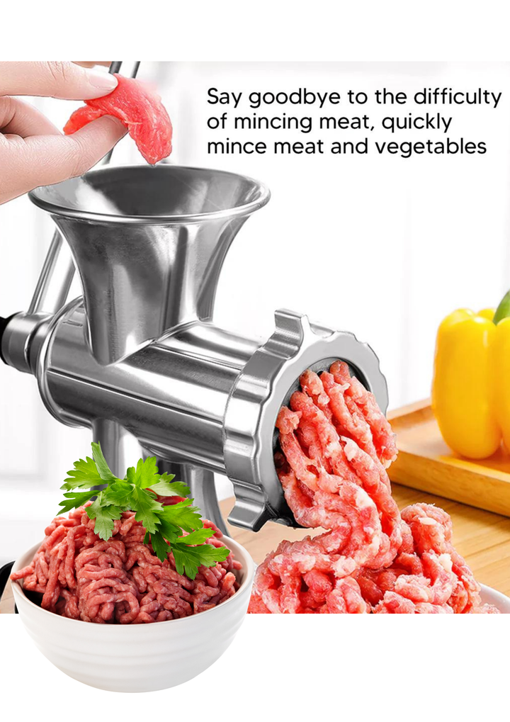 4.Convenient and Labour Saving: The meat grinder has simple structure and novel appearance. The meat mincer is made of high quality aluminium alloy with labour saving handle. The feeding port is round, which can add more meat and grind all meat quickly.