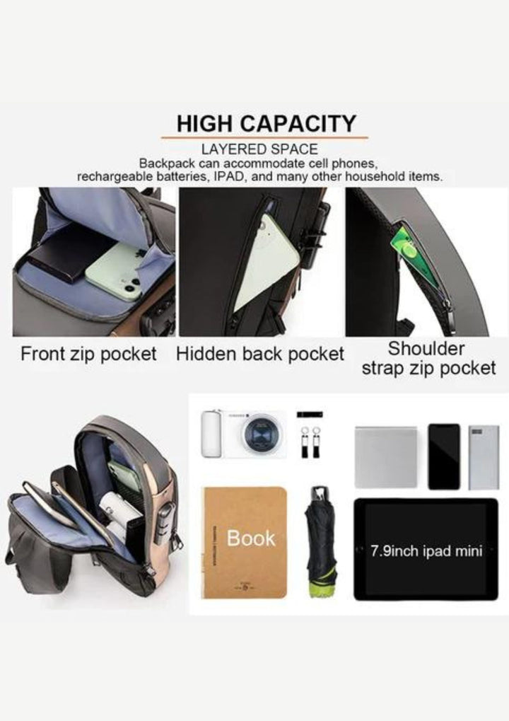 Multifunctional Chest Bag Crossbody Tech Sling Bag With Usb Charging Port With Password Lock