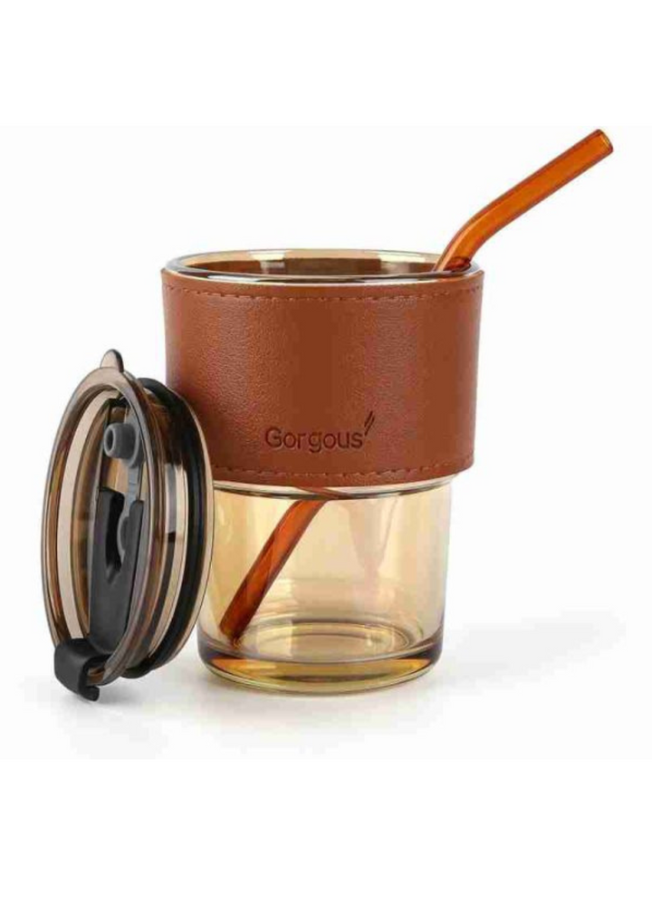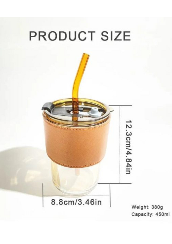 Coffee Cup Glass Mug With Lid And Straw (450ml) (random Color)