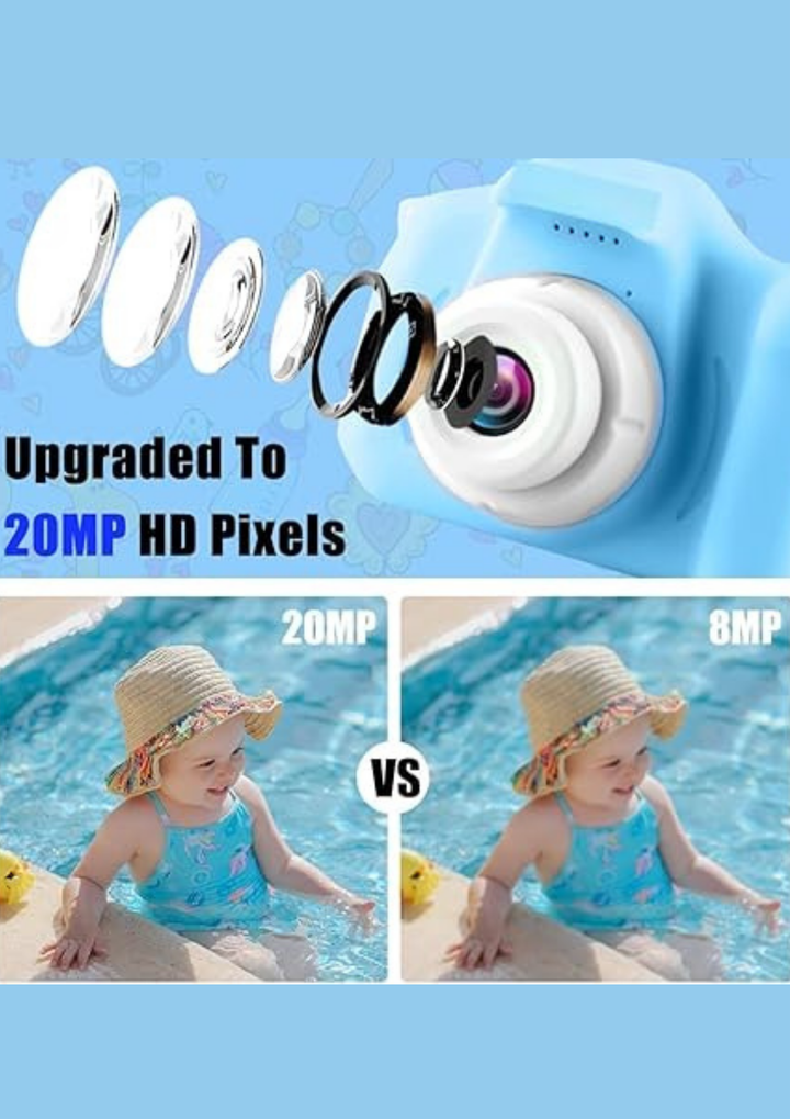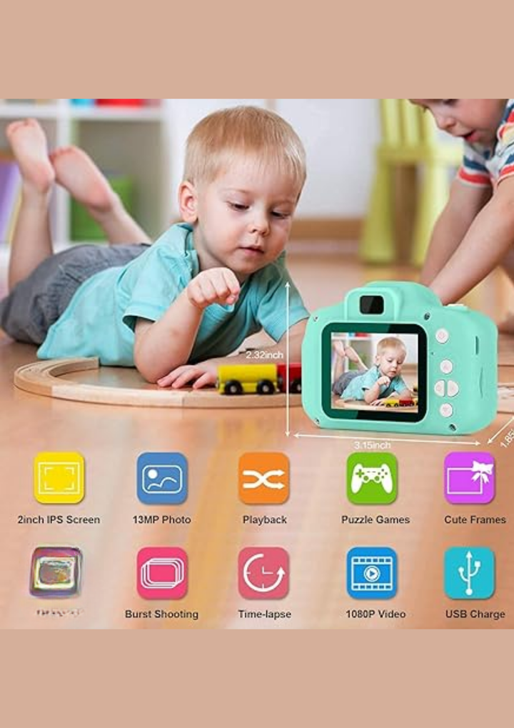 【Photo & Video】 This kids camera is equipped with 8x digital zoom + rear camera, and equipped with a 2 inch IPS screen, 12.0 MP and 2000W pixels. Compared with other kids camera, the clarity of the photo is greatly improved. Support self-timer, it can shoot up to 1920x1080P photos and videos.
