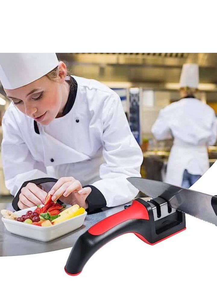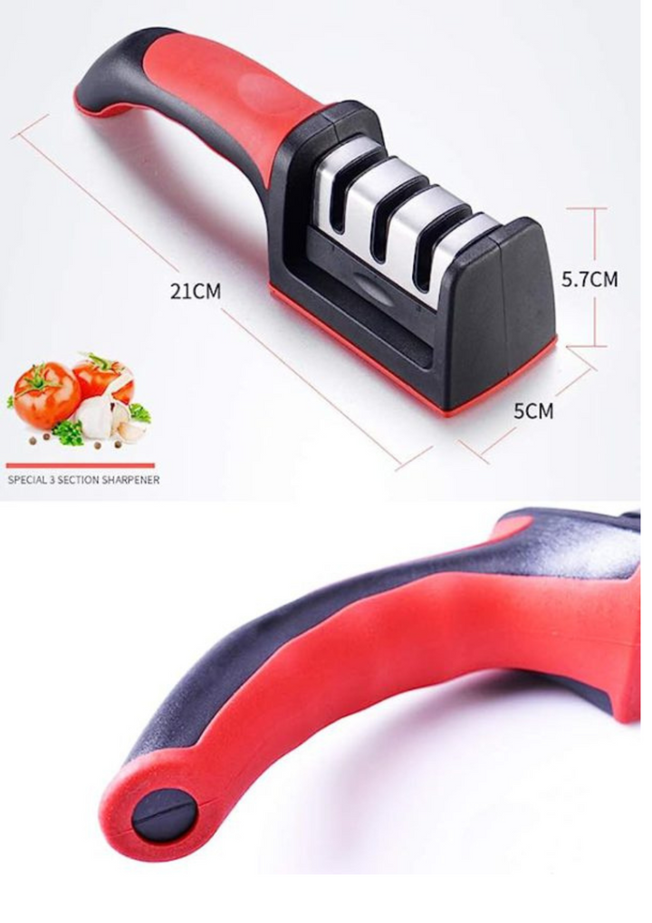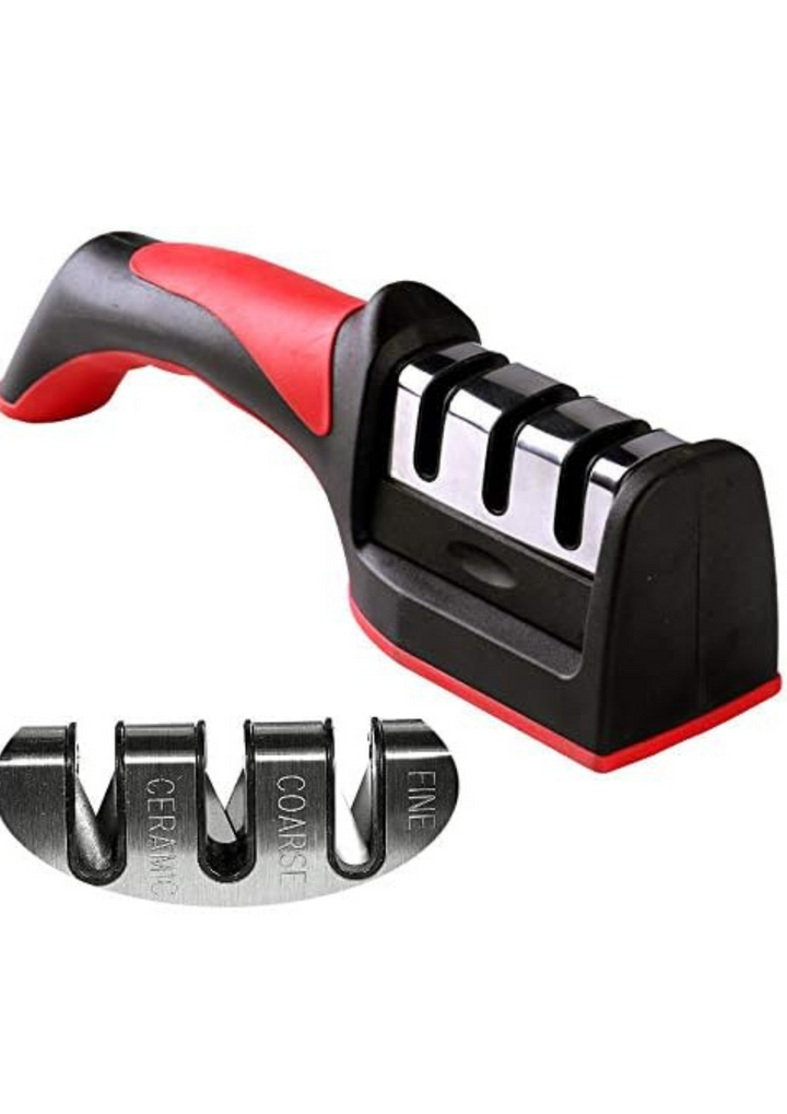 - Easy to Use: Whether you’re right-handed or left-handed, our sharpener’s ergonomic handle allows for quick and effortless sharpening in seconds. Simply place the blade in each groove and gently pull for several times to achieve